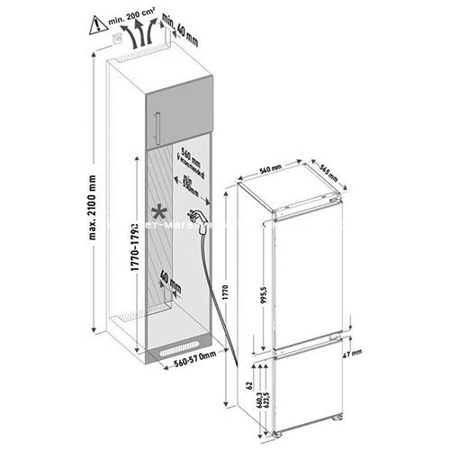 Встраиваемый двухкамерный холодильник-морозильник BRISTEN FNF выполнен в белом цвете шириной встраивания 60 см.