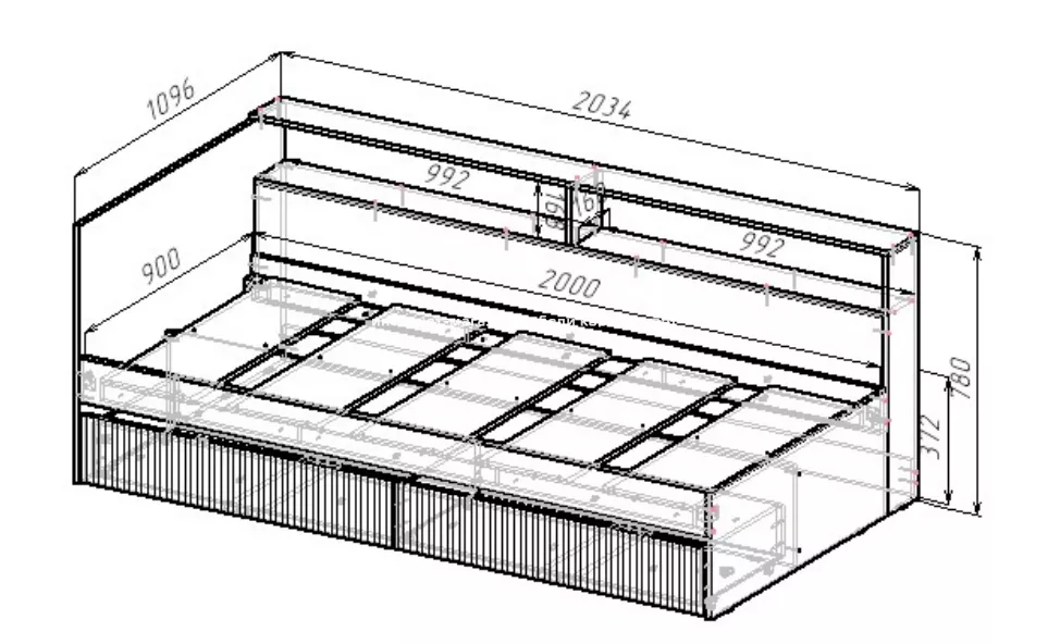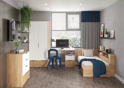 Ивис - комплект мебели для современной квартиры. Функциональные места для хранения, открытые полки и закрытые ящики позволяют разместить в спальне всё необходимое.
