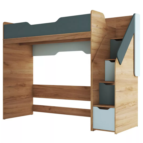 • Для безопасности торцевые части кровати-чердака скруглены и облицованы кромкой толщиной 2 мм, а ступени лестницы усилены дополнительными крепежными уголками ;